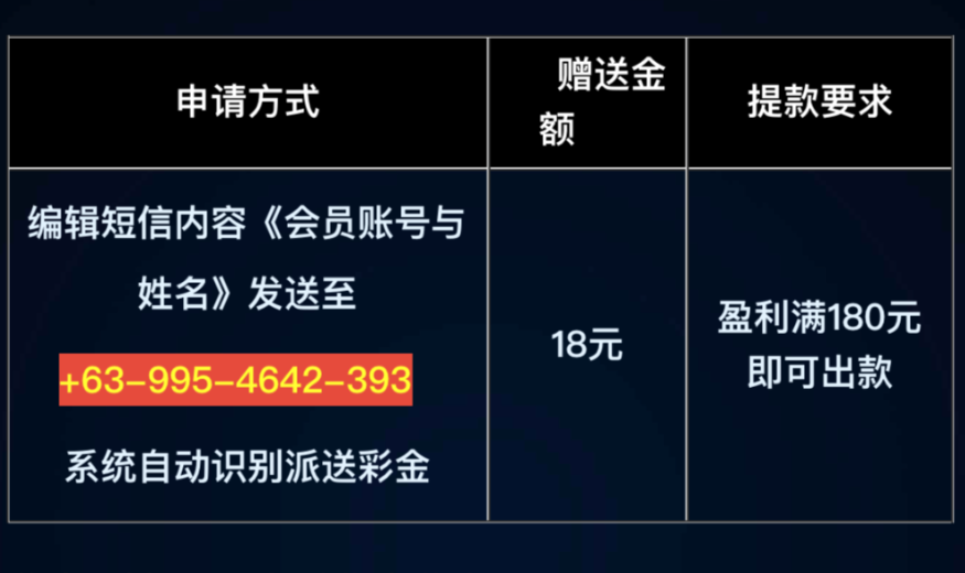 活动详情:注册发短信符合送18,180提